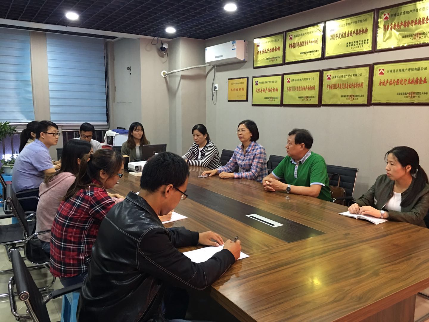 2017年9月28日,河南遠志房地產(chǎn)評估有限公司,召開專題會議,組織全體員工傳達、貫徹、學習《中國***黨洛陽市第十一屆委員會第四次全體會議決議》。